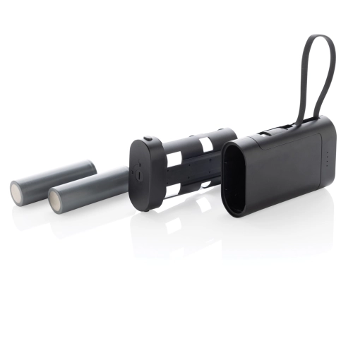Unique design powerbank that is designed to stimulate recycling of the battery at the end of the products life cycle. Simply open the powerbank and remove the a-grade battery for safe and responsible battery recycling. The 10,000 mah powerbank comes with an integrated type C cable that you can easily connect to your device to start charging direct. The cable can also be used to charge the powerbank itself. With one additional type C port to connect your own charging cable. Made with recycled ABS and recycled TPE. Total recycled content: 30% based on total item weight. RCS certification ensures a completely certified supply chain of the recycled materials. Packed in FSC® kraft packaging. PVC Free. Input: 5V/2.1A Output 5V/2.4A.
