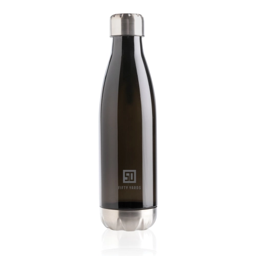Elevate your daily water intake using this leakproof water bottle with stainless steel lid and bottom and transparent body. With a base that fits in most cup holders, this sleek looking water bottle will keep you hydrated on the go wherever you are. Capacity 500ml. BPA free.