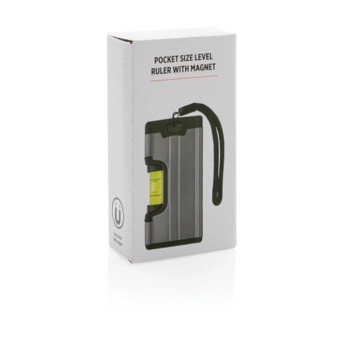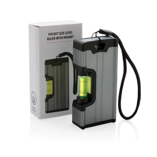 Work precise and make sure the details are perfect with this 10 cm pocket size aluminum level ruler. The level ruler comes with a magnetic base to attach it to metal surfaces and shock absorbing rubber end caps. Including polyester wrist strap. Accuracy 0.5mm