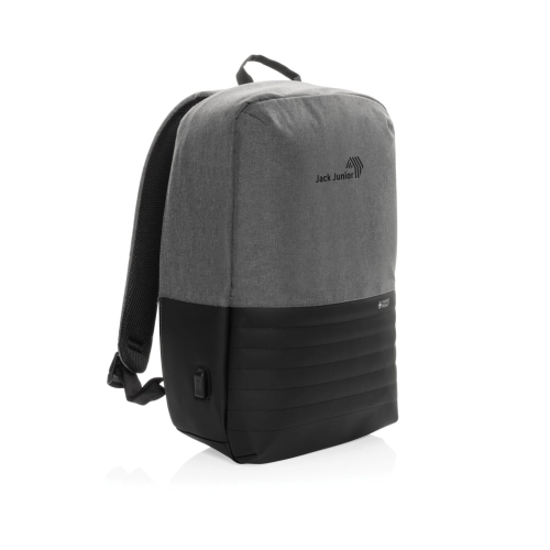 This Swiss Peak AWARE™ 15.6" laptop backpack with anti-theft back opening makes it easy to carry your tech gadgets and personal items out and about. The inner features a laptop and tablet compartment. RFID safe pockets for your wallet and passport. Connect your power bank easily to the integrated USB Type-C charging port and charge your phone or tablet on the go. Hidden easy access back pocket. With AWARE™ tracer that validates the genuine use of recycled materials. Each bag has reused 20.8 PET bottles. 2% of proceeds of each Aware™ product sold will be donated to Water.org. NFC (13.56 MHz) Blocking.