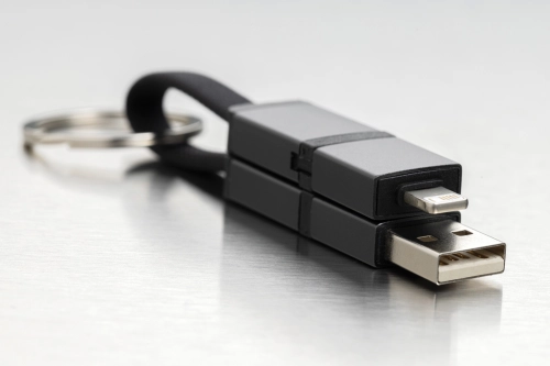 Fast charging 4-in-1 keychain cable made from RCS recycled TPE, recycled aluminium alloy and recycled PET. With USB A and type C input and IOS and Type C output it is suitable to charge many types of items. This small size cable supports a boosting 60W fast charge. Easy to attach to your keychain with included keychain ring. The connectors have magnets inside to keep them together while carrying them. Total recycled content: 60% based on total item weight. RCS certification ensures a completely certified supply chain of the recycled materials. Max supported current 20V/3A; Packed in plastic free envelope packaging. PVC free.