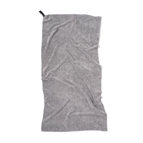 Made of microfibre and partially recycled PET bottles. Lightweight and compact. Its unique terry cloth structure can absorb more water and dries three times faster than a traditional towel. Ideal for outdoor activities, sports and travel. This size is excellent for use in the gym. Made from 52% GRS (Global Recycle Standard) certified recycled materials, with GRS certification guaranteeing fully certified supply chains of recycled materials. Total recycled content based on total product weight.
